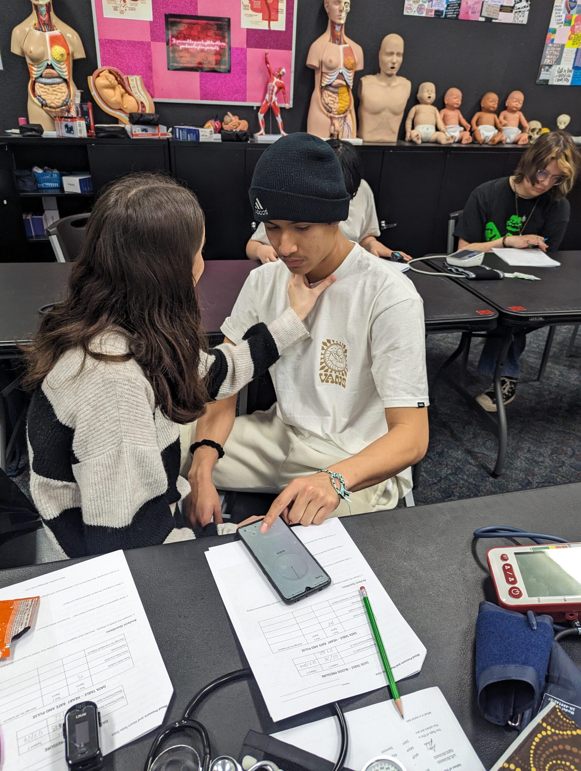 Today the students in anatomy and physiology learned how to take manual and electronic blood pressures as well as manual and electronic pulse rates and oxygen saturations.